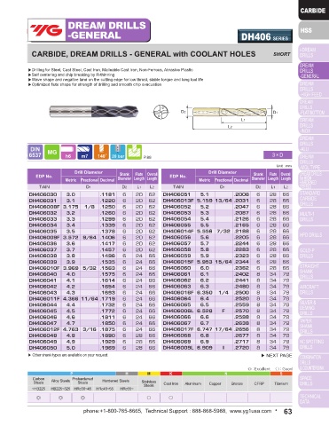 CARBIDE, DREAM DRILLS - GENERAL without COOLANT HOLES LONG CARBIDE, DREAM DRILLS - GENERAL with COOLANT HOLES SHORT