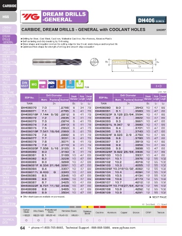 CARBIDE, DREAM DRILLS - GENERAL with COOLANT HOLES SHORT CARBIDE, DREAM DRILLS - GENERAL with COOLANT HOLES SHORT