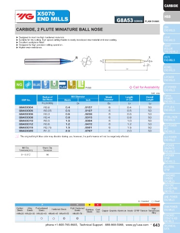 642 • phone:+1-800-765-8665, Technical Support : 888-868-5988, www.yg1usa.com phone:+1-800-765-8665, Technical Support : 888-868-5988, www.yg1usa.com • 643