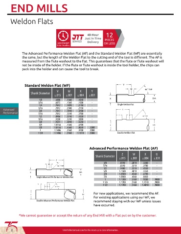 *We cannot guarantee or accept the return of any End Mill with a Flat put on by the customer.