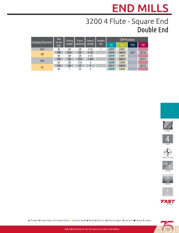 ■ Titanium ■ Super Alloys ■ Hardened Steels ■ Stainless Steels ■ Steels ■ Cast Iron ■ Brass & Copper ■ Low Si Al ■ General Purpose