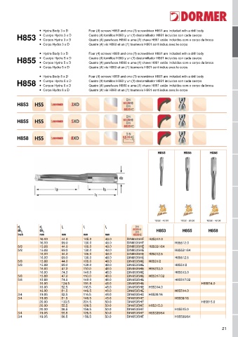 Quatro (4) parafusos H860 e uma (1) chave H861 estão incluídos com o corpo da broca