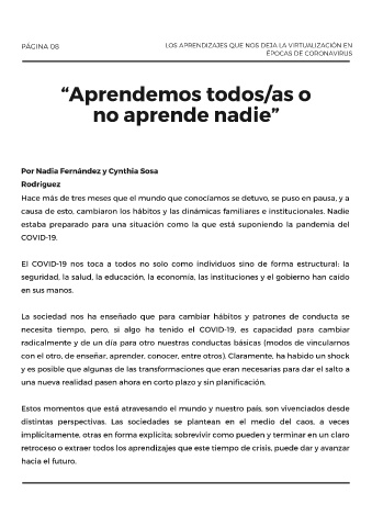 El COVID-19 nos toca a todos no sol o como individuos sino de for ma estructural: la