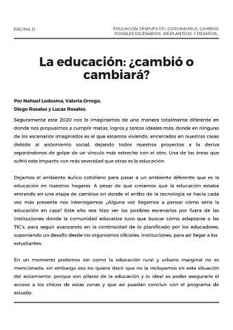 EDUCACIÓN DESPUÉS DEL CORONAVIRUS. CAMBIOS,