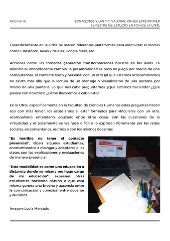 relación alumno/docente cambió la presencialidad se puso en juego por medio de una