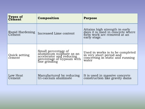 Rapid Hardening Increased Lime content days it is used in concrete where