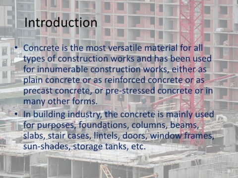 • In building industry, the concrete is mainly used