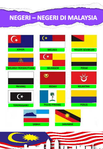 NEGERI – NEGERI DI MALAYSIA JOHOR MELAKA NEGERI SEMBILAN WILAYAH PERSEKUTUAN SELANGOR PERAK PAHANG KEDAH KELANTAN TERENGGANU PULAU PINANG PERLIS SABAH SARAWAK