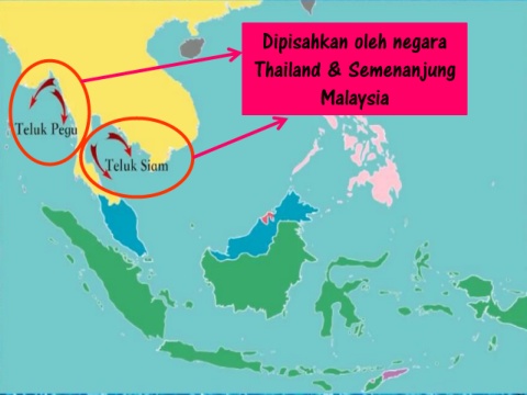 Dipisahkan oleh negara Thailand & Semenanjung Malaysia