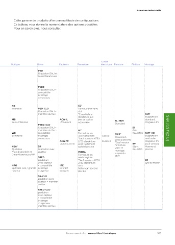 Congurateur Longueur spéciales Module LED (W) (lm/W) Température de couleur (K) Optique Driver Capteurs Fermeture électrique Peinture Finition Montage