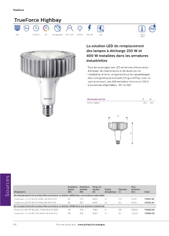 Sources Désignation Puissance Puissance Temp. de Classe Faisceau Flux Code