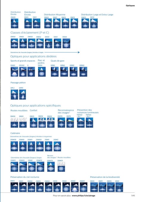 544 Pour en savoir plus : www.philips.fr/eclairage Remarque : le portefeuille d’optiques dière selon les modèles de luminaires. r / ec l a i r a g e * éclairement vertical ** Coupe-ux arrière 545
