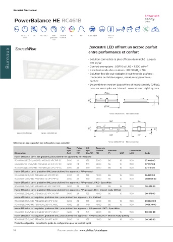 Haute E±cacité, rectangulaire, gradation DALI, pour plafond fers apparents, PIP=poussoir, SWZ = SpaceWise