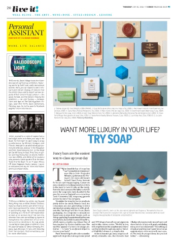 for more information. Paris’ Seem Soap Studio takes a similar As far as luxuries go, fancy soap is a rel- es. Not only do you get clean, but you feel