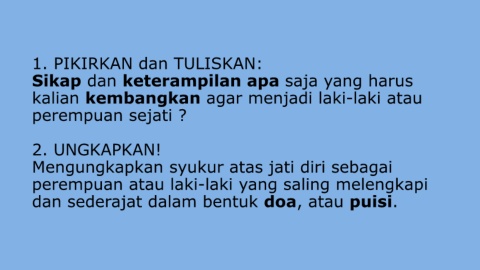 kalian kembangkan agar menjadi laki-laki atau