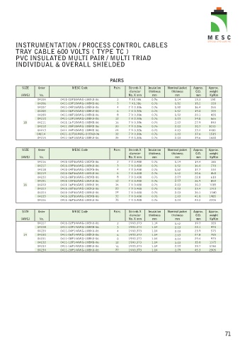 SIZE Order MESC Code Pairs Strands X Insulation Nominal jacket Approx. Approx.