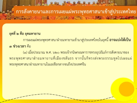 การเผยแผ่พระพุทธศาสนาฝ่ายมหายานเข้ามาสู่ประเทศไทยในยุคนี้ อาจแบ่งได้เป็น