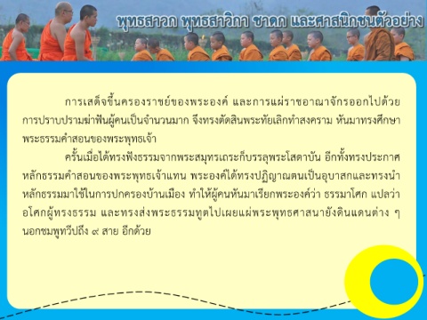 หลักธรรมค าสอนของพระพุทธเจ้าแทน พระองค์ได้ทรงปฏิญาณตนเป็นอุบาสกและทรงน า