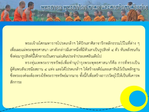 พระเจ้าอโศกมหาราชโปรดเกล้าฯ ให้ปักเสาศิลาจารึกหลักธรรมไว้ในที่ต่าง ๆ