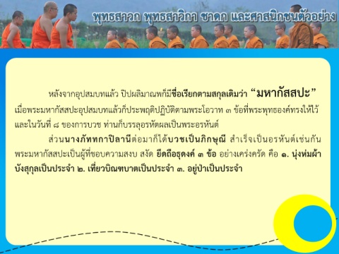 ส่วนนางภัททกาปิลานีต่อมาก็ได้บวชเป็นภิกษุณี ส าเร็จเป็นอรหันต์เช่นกัน