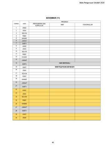 TARIKH HARI PENTADBIRAN DAN HEM KOKURIKULUM
