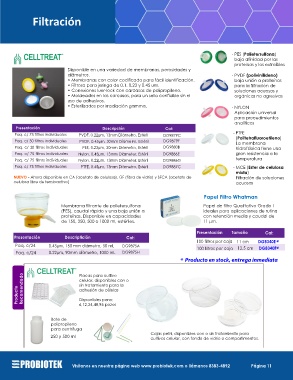• Membranas con color codificado para fácil identificación. baja unión a proteínas