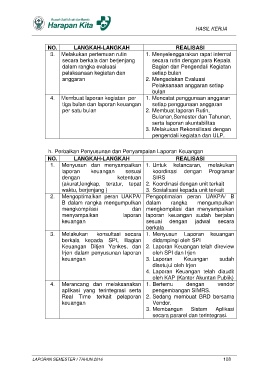 4. Membuat laporan kegiatan per 1. Mencatat penggunaan anggaran