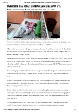 10/4/2016 Bayi Kembar Siam berhasil dipisahkan di RS Harapan Kita – Mediajakarta.com