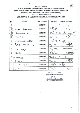 RSAB HARAPAN KITA MENUJU WILAYAH BEBAS KORUPSI (WBK) DAN