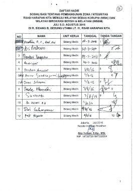 NO NAMA UNIT KERJA TANGGAL TANDA TANGAN