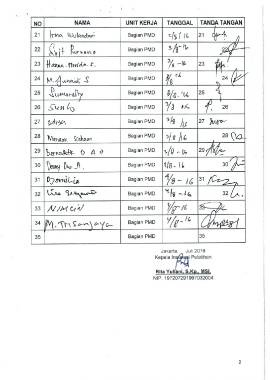 NO NAMA UNIT KERJA TANGGAL TANDA TANGAN
