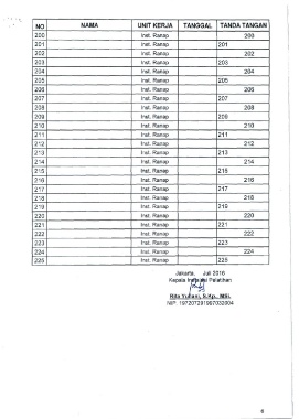 NO NAMA UNIT KERJA TANGGAL TANDATANGAN