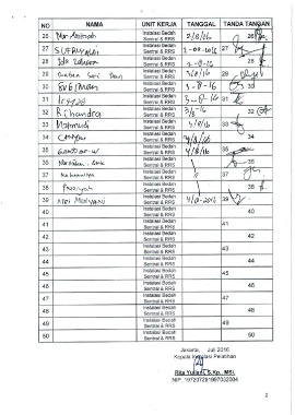 NO NAMA UNIT KERJA TANGGAL TANDA TANAN