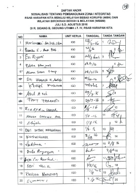 NO NAMA UNIT KERJA TANGGAL TANDA TANGAN