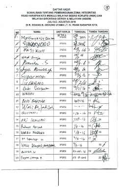 N NAMA UNIT KERJA TANGGAL TANDA TANGAN
