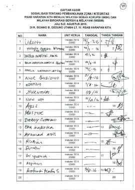 NO NAMA UNIT KERJA TANGGAL TANDA TANGAN