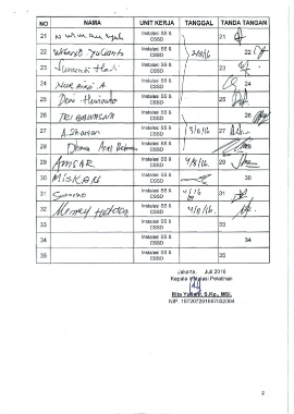 NO NAMA UNIT KERJA TANGGAL TANDA TANGAN