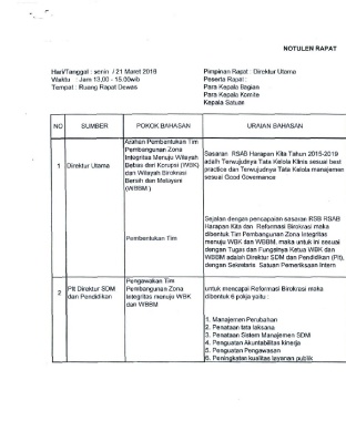 Tempat : Ruarig Rapat Dewas Para Kepala Bagian