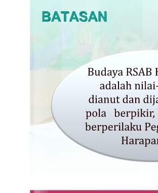 BATASAN Budaya RSAB H adalah nilai- dianut dan dija pola berpikir, b berperilaku Peg Harapan