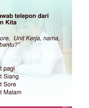 awab telepon dari an Kita ore, Unit Kerja, nama, bantu?” at pagi at Siang at Sore at Malam