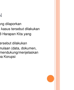 N ang dilaporkan n kasus tersebut dilakukan B Harapan Kita yang ersebut dilakukan mulaan (data, dokumen, mendukung/menjelaskan na Korupsi