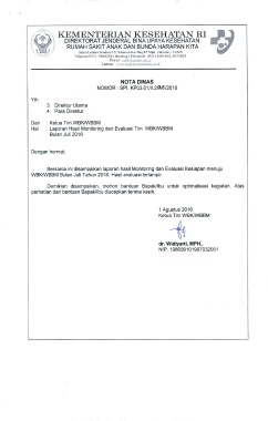 WBKIWBBM Bulan Juli Tahun 2016. Hasil evaluasi terlampir.