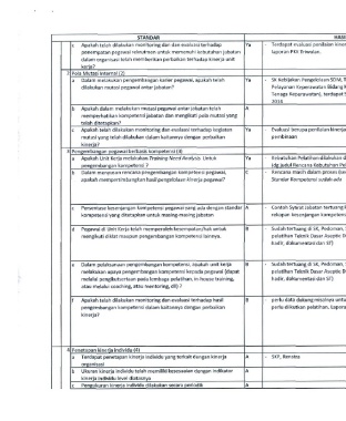 c Apakah telah dilakukan monitoring dan evaluasi terhadap kegiatan Va - Kebutuhan Pelatihan dilakukan d