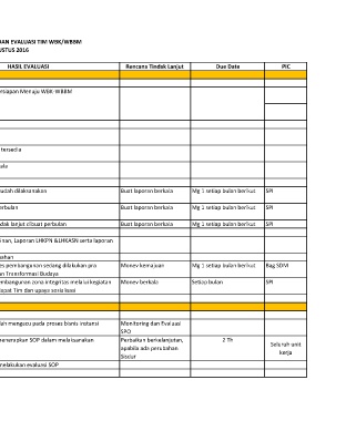 DAN EVALUASI TIM WBK/WBBM Rencana Tindak Lanjut Due Date PIC