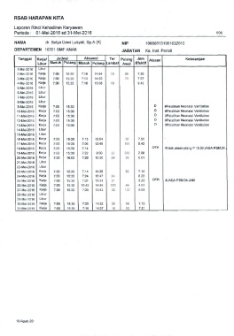 5-Mei-2016 Kerja 7:00 15:30 7:16 16:58 9.42 #tidak absen plang P 15.30 JAGA PSM 24
