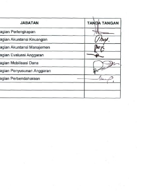JABATAN TAN TANGAN agian Periengkapan agian Akuntansi Keuangan - agian Akuntansi Manajemen agian Evaluasi Anggaran agian Mobilisasi Dana agian Penyusunan Anggaran agian Perbendaharaan