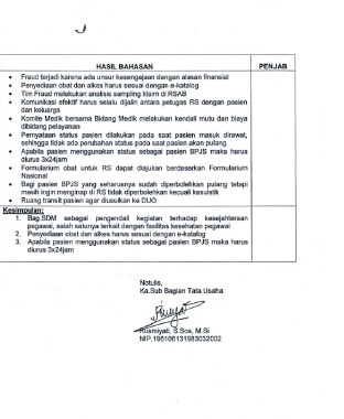 • Komite Medik bersama Bidang Medik melakukan kendall mutu dan biaya