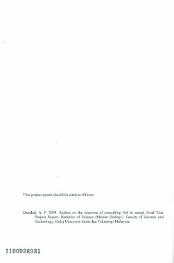 Danabal, A P. 2004. Studies on the response of presettling fish to sound. Final Year
