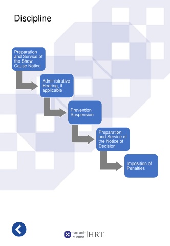 Discipline Preparation and Service of the Show Cause Notice Administrative Hearing, if applicable Prevention Suspension Preparation and Service of the Notice of Decision Imposition of Penalties
