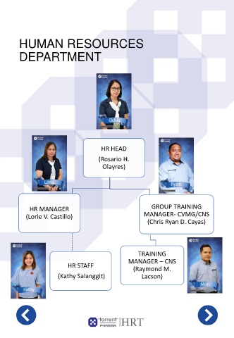 HUMAN RESOURCES DEPARTMENT HR HEAD (Rosario H. Olayres) HR MANAGER GROUP TRAINING (Lorie V. Castillo) MANAGER- CVMG/CNS (Chris Ryan D. Cayas) TRAINING MANAGER – CNS HR STAFF (Raymond M. (Kathy Salanggit) Lacson)